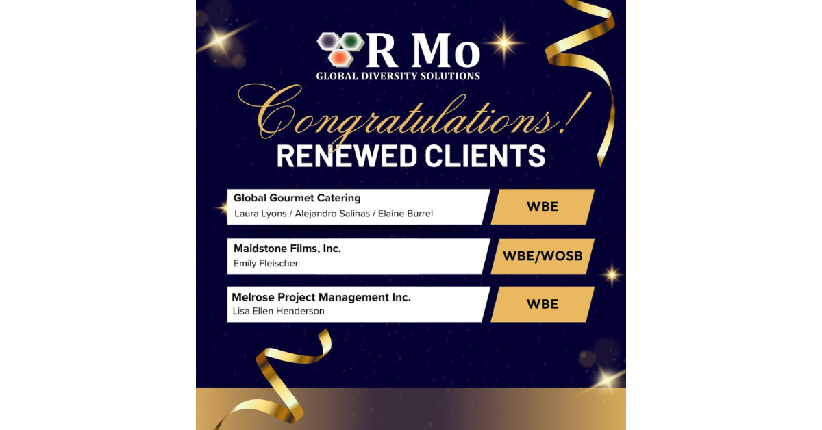 At R Mo Global Diversity Solutions, we don’t just help renew certifications. We ensure our clients remain visible, competitive, and prepared for future success.